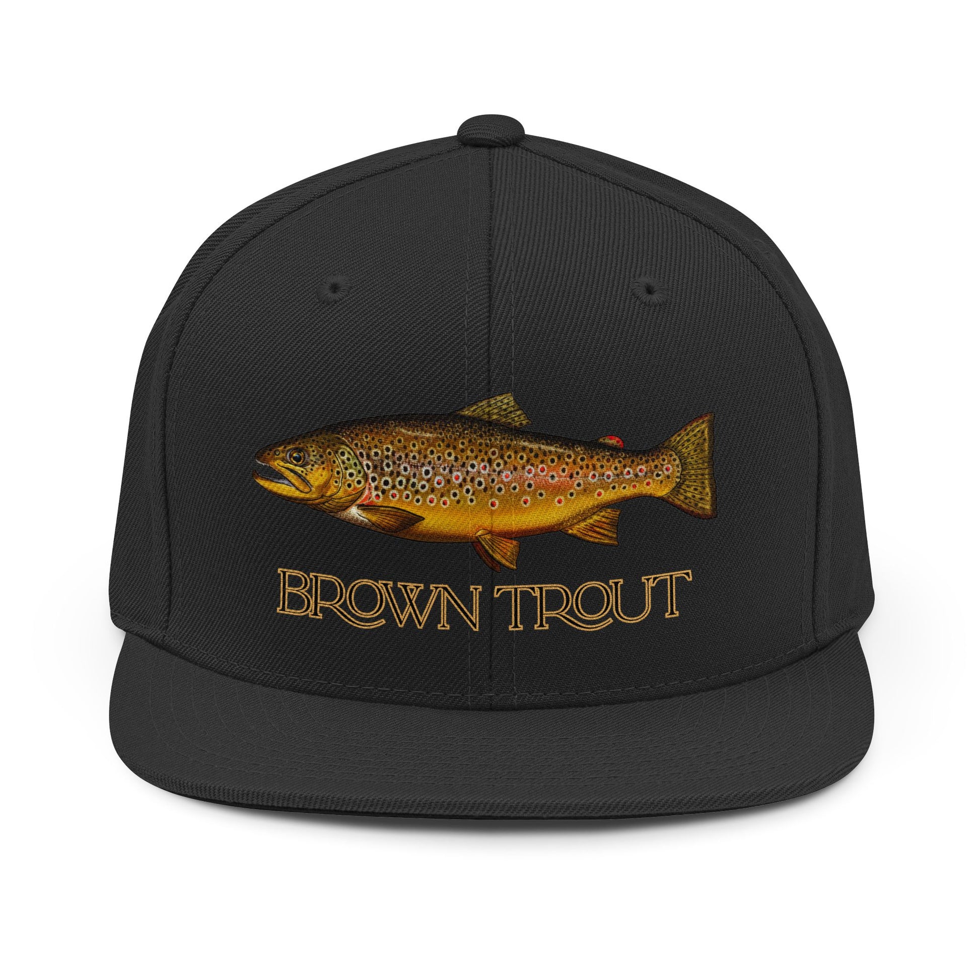 Brown Trout Snapback Hat — Embroidered Fishing Cap for Anglers